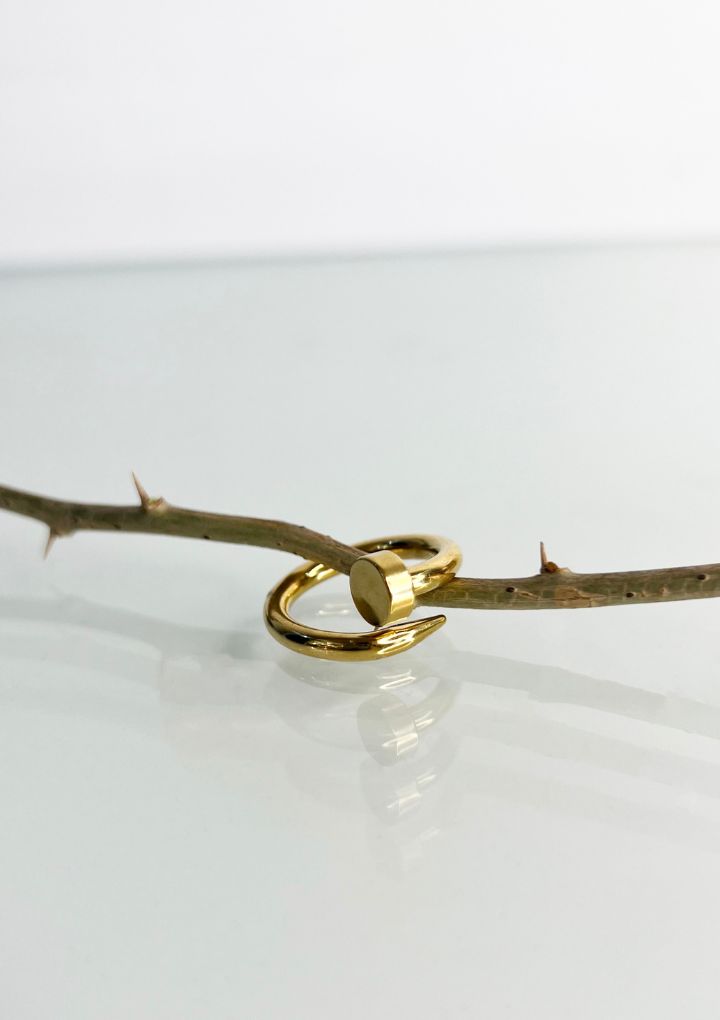 Aura ring is a bold gold statement ring styled like a nail. It is lighweight and absolutely perfect for formal wear or everyday casual wear.