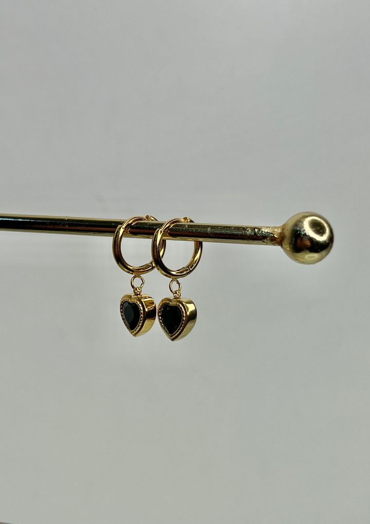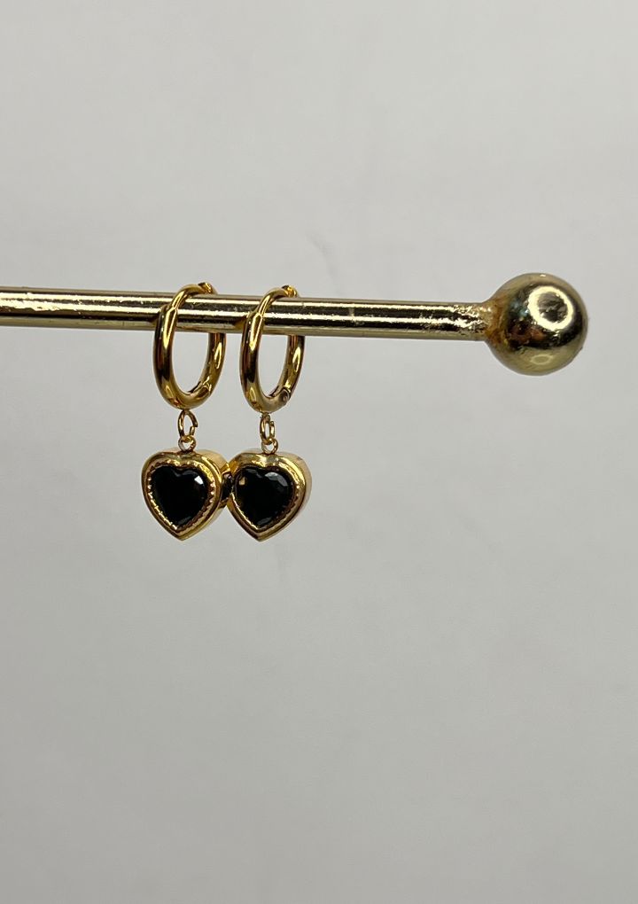 Sleek gold hoops with striking black heart drops, these earrings are understated yet unforgettable. Perfect for a girl's night out or office to dinner plans.