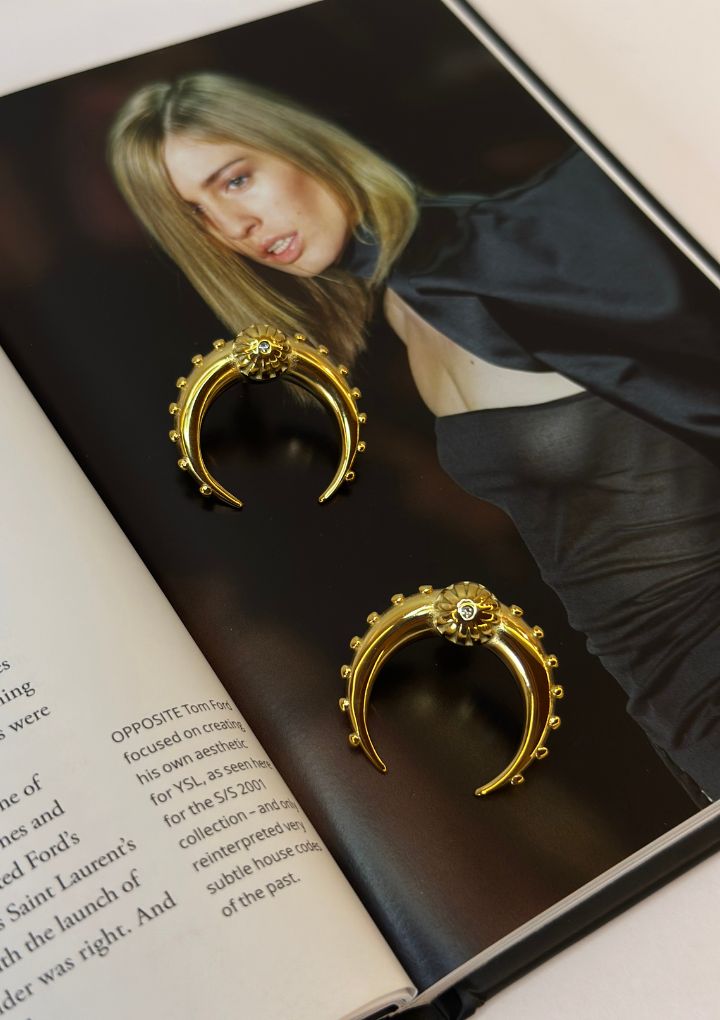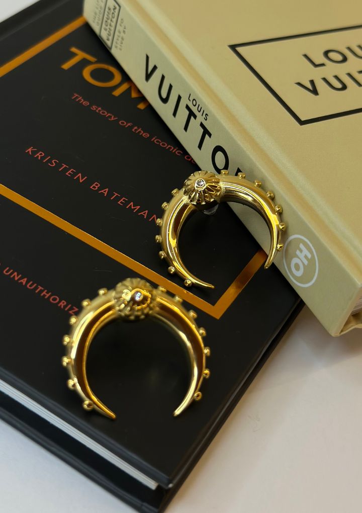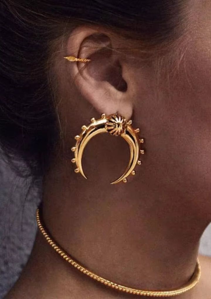 These earrings showcase a striking crescent design with tiny beads and a touch of sparkle. They are unique, eye-catching and perfect for vacation styling or parties.