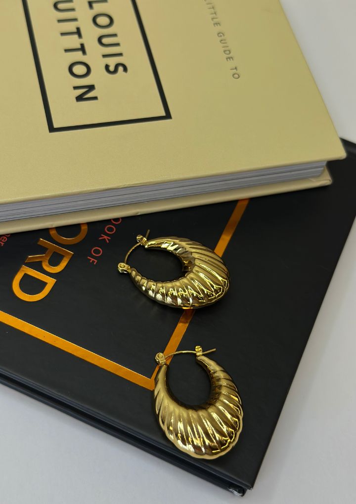 These hoops have a twisted, buttery design and a polished finished that sets them apart from others. Perfect for a casual denim look or for adding a touch of elegance to a night out.