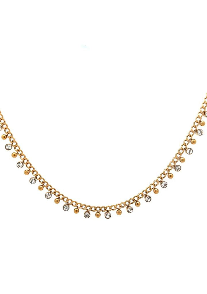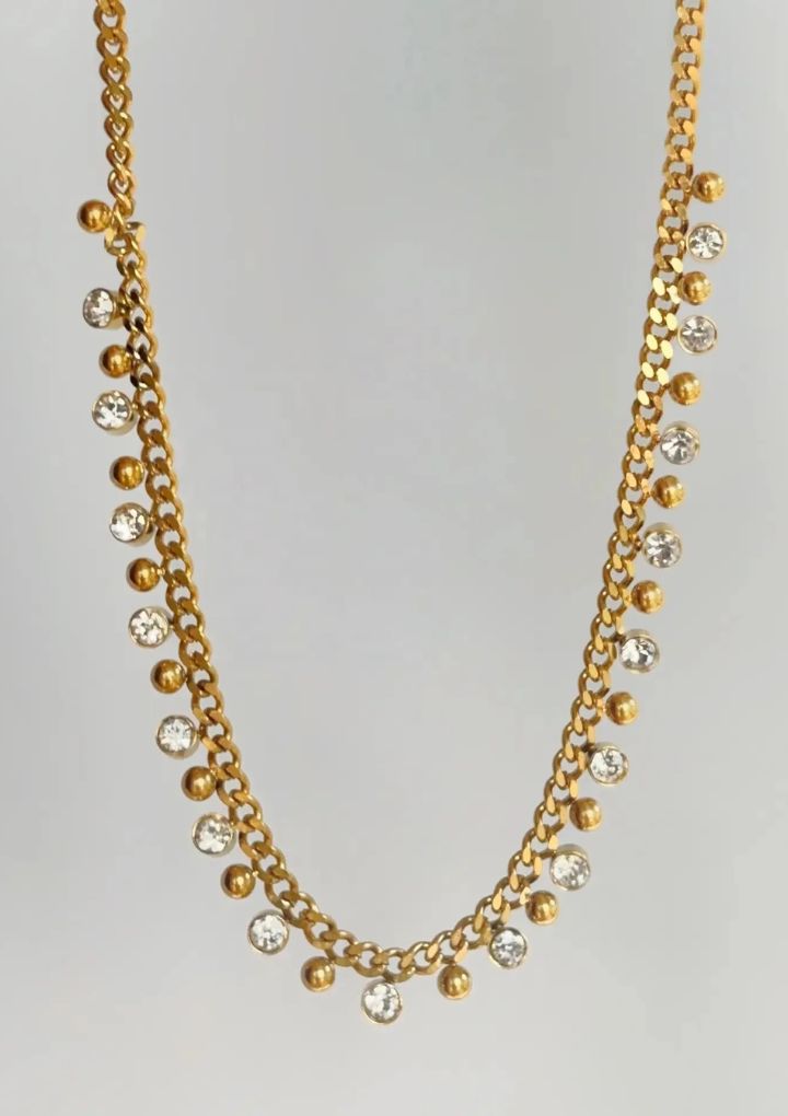 Eternity necklace features a gold chain necklace with dangling beads and sparkling stones. It is our most loved and absolutely perfect for modern or ethnic looks.