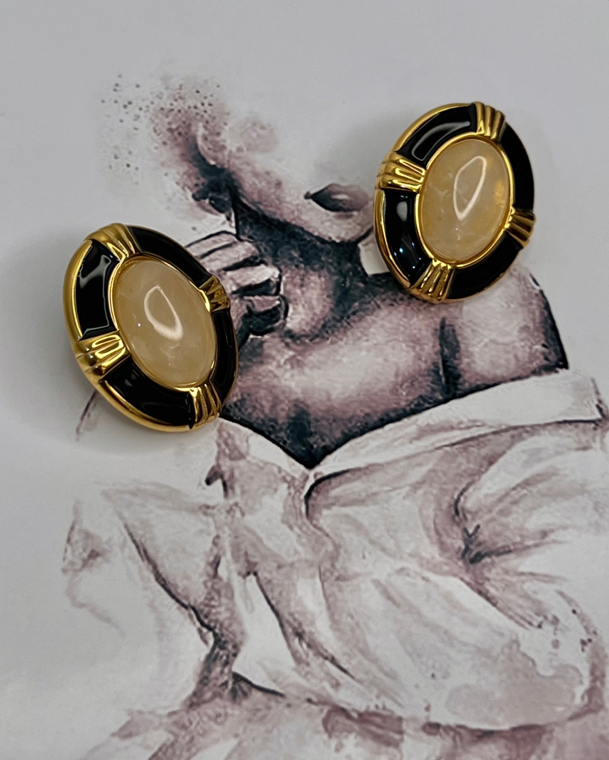 These oval shaped studs are crisply outlined in deep black enamel, hence giving your ears a very dramatic look. Perfect for art gallery openings or a cocktail party look.