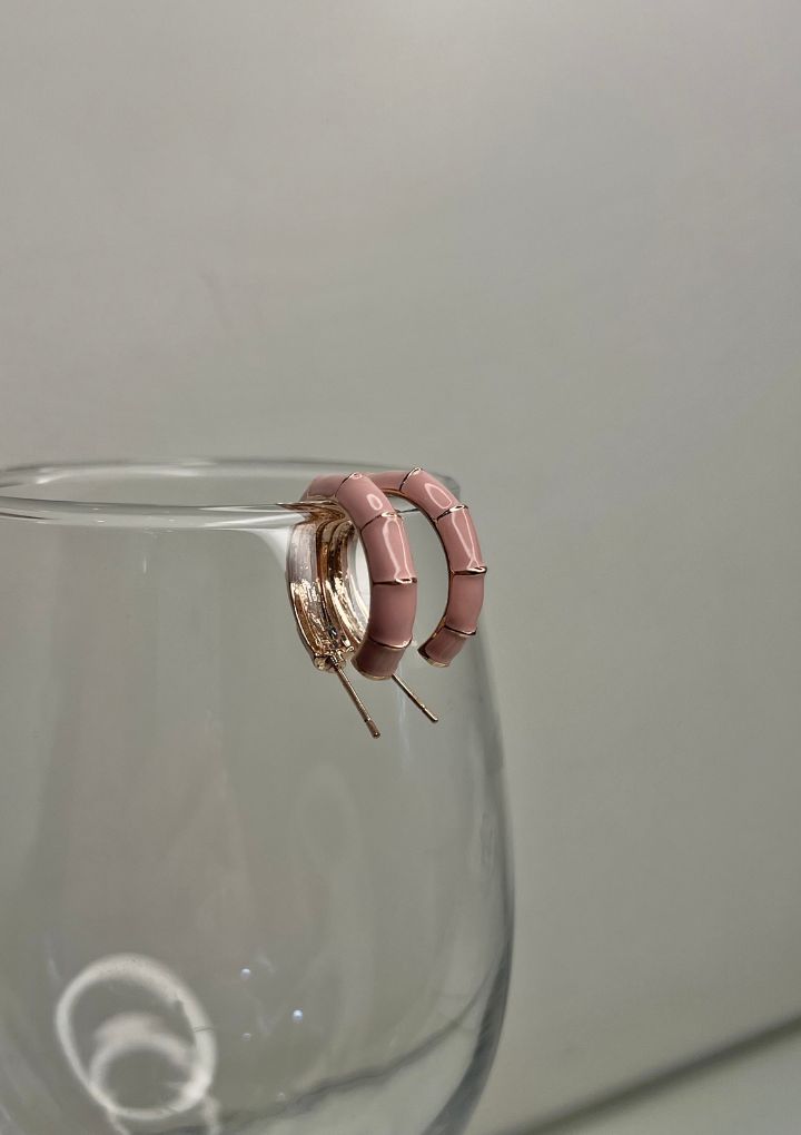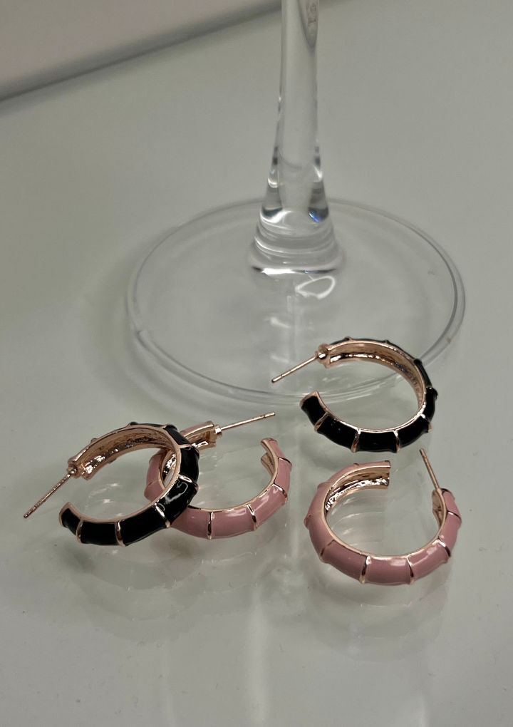 With their bold shape and glossy black/pink finish, our Joy hoops bring a fierce edge to your style. Perfect for shopping day and vacations.
