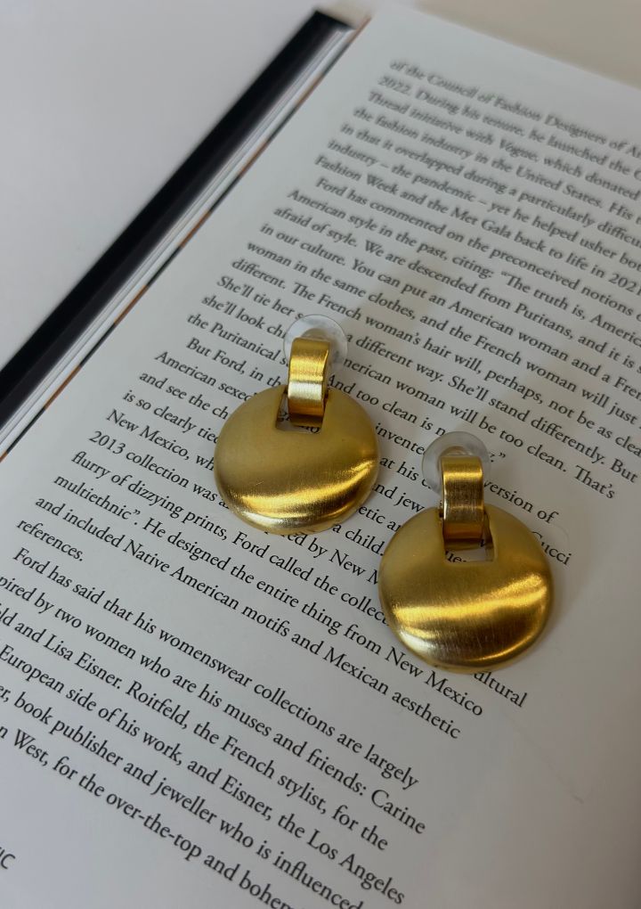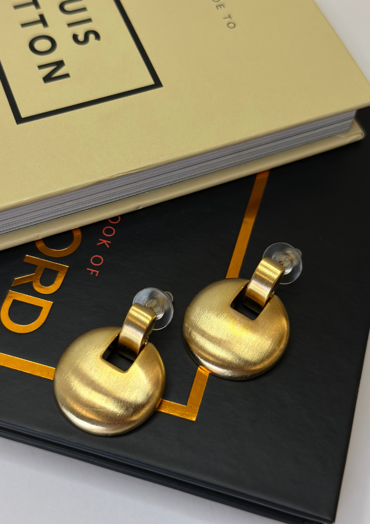 Our June earrings are bold and one-of-a-kind. They have a matte gold finish and a modern shape. This pair will be your go-to for every lunch and dinner.