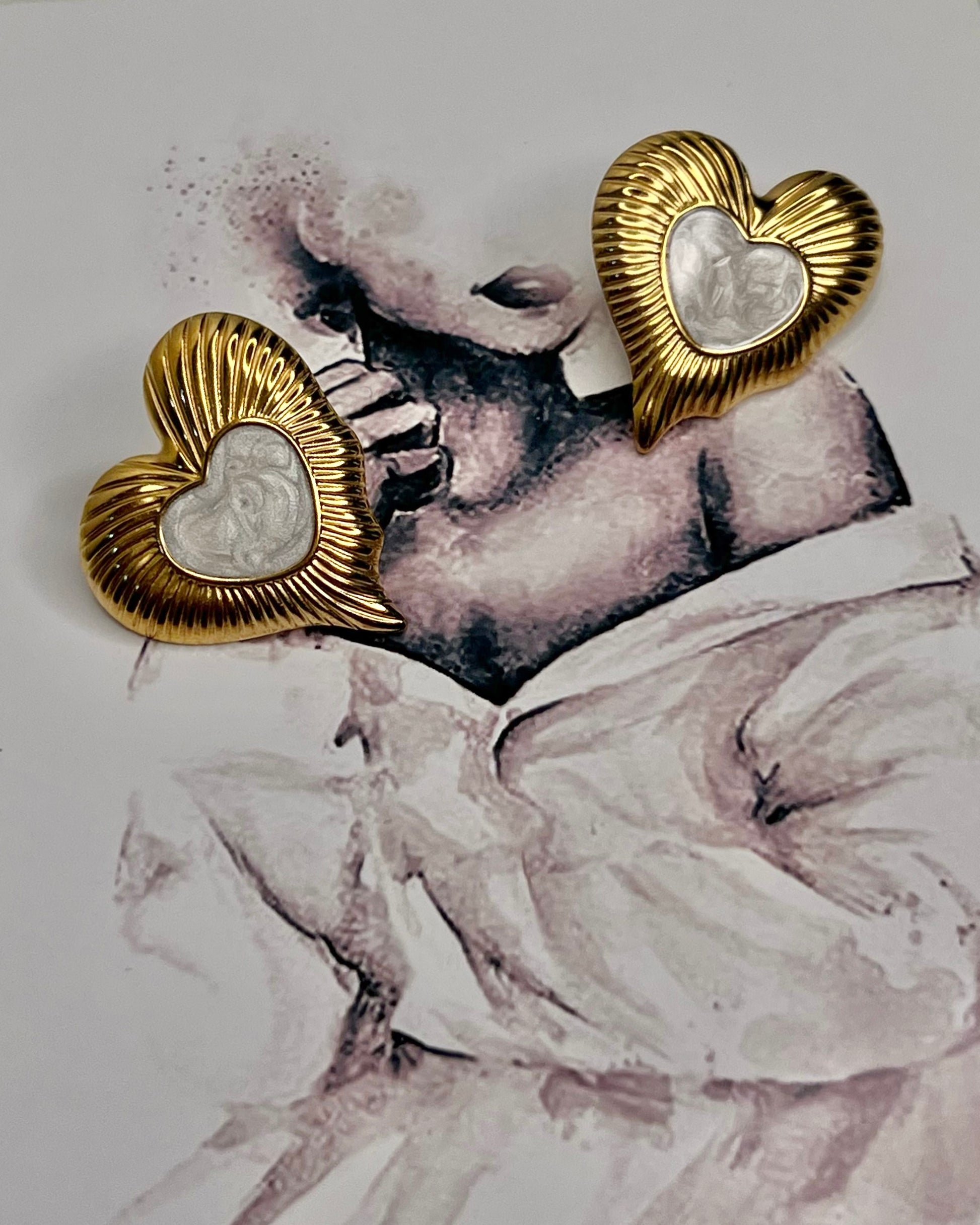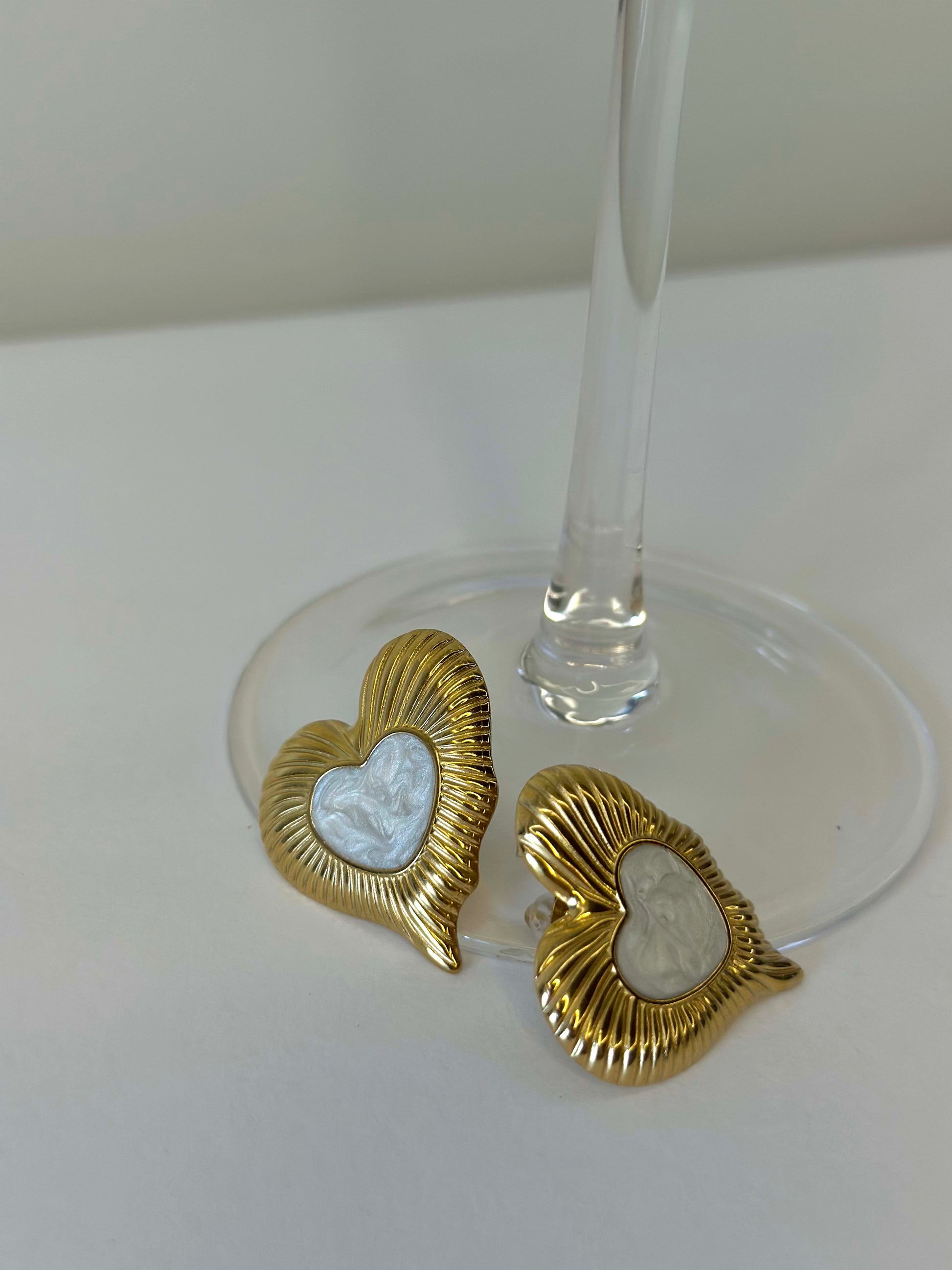Fall in love with these darling studs where fluted gold hearts snugly hug a creamy mother-of-pearl center. Perfect to add a sprinkle of charm to your romantic date night or summer by the sea look.