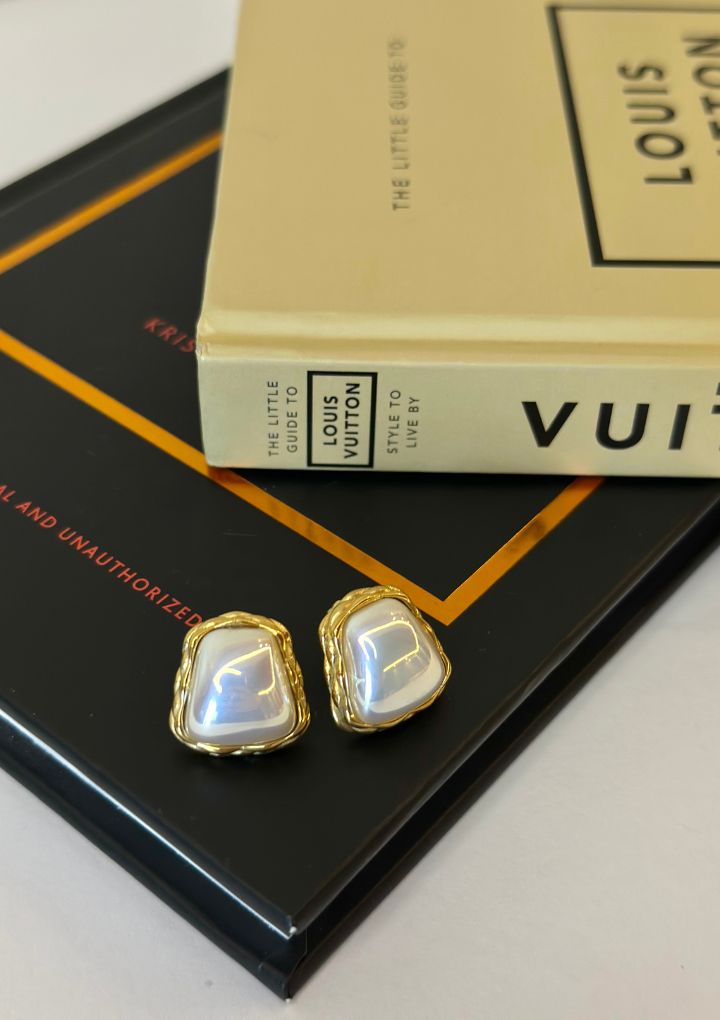 These are vintage-inspired studs with pearl-like centers and textured gold frames. Oak studs are timeless and perfect for classy dinners or elegant daywear.