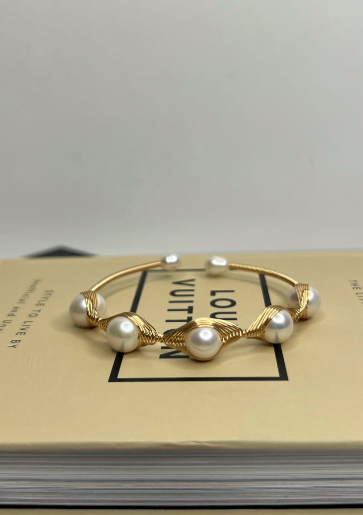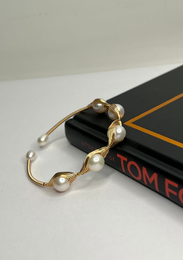 Perla handcuff is a gold wire cuff bracelet with elegant white pearls, wrapped in a delicate, handcrafted design. Perfect to wear for brunch dates or adding a touch of class to everyday outfits.