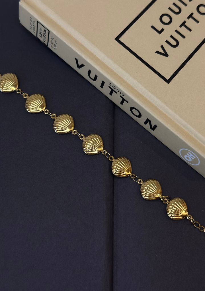This bracelet features a series of gold-toned shell-shaped charms linked together, giving it a chic, beachy vibe. It is perfect for everyday wear and summer styling.