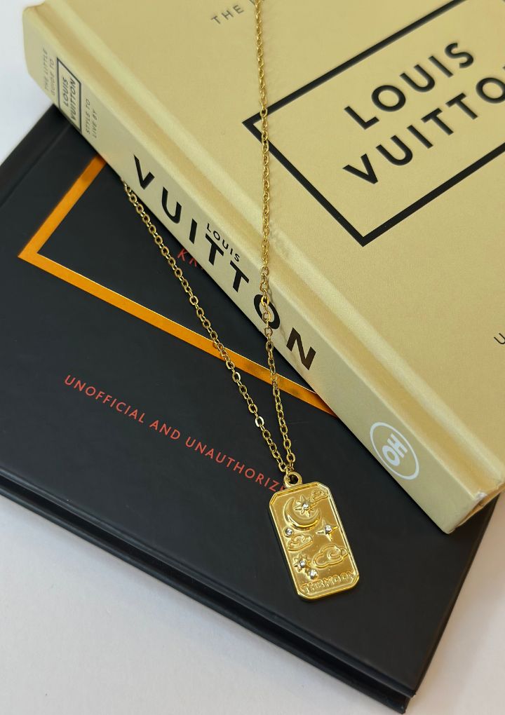 Willow necklace is a celestial gold necklace with a moon tarot-inspired pendant, detailed with stars and clouds for a magical, mystical charm. It is perfect for adding a little something to your casual shirt and jeans look.